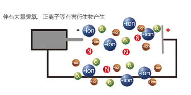 其中,双极电晕放电技术是通过在两个电极上分别加载正高压和负高压的方式,从而使两个电极之间形成不均匀的电场而产生电晕放电,将流过的空气电离后产生空气负离子;单极电子喷射技术一般是采用单极负高压作为电子释放源,电子释放电极则是采用金属或普通碳纤维制成的释放尖端,通过释放电极的方式来释放电子,电子再与空气中的氧分子结合生成负氧离子。这两种空气负离子技术所生成的负氧离子以大、中粒径为主,浓度不高、扩散性弱,而且还伴有正离子、臭氧等有害衍生物产生。这也就能解释,为何这三款产品释放出的负离子浓度低且不稳定,甚至有的还发生正离子爆表的现象了。
